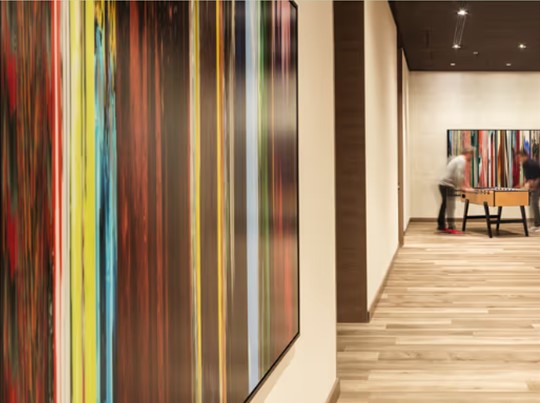 Das Intercity Hotel Braunschweig zeigt ein Fotokunstprojekt von Robert Krischan ter Horst. Seine Arbeiten befassen sich mit digitaler Unschärfe. in Braunschweig aufgenommene Videosequenzen sind Grundlage der Bilder ter Horsts, die nichts Gegenständliches abbilden, sondern vielmehr auf die realen Formen auflösen und so neue Welten entstehen lassen. Wussten Sie, dass auch viele andere Intercity Hotels mit tollen Kunstprojekten ausgestattet sind?